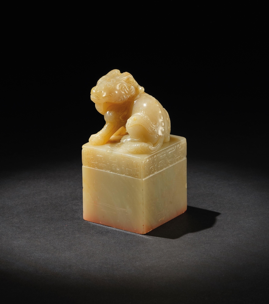 9.清乾隆《壽山石瑞獸鈕印璽》印文:「長春宮寶」,5.1x5x9.6公分,估價40萬至60萬港元,成交價114萬7000港元。