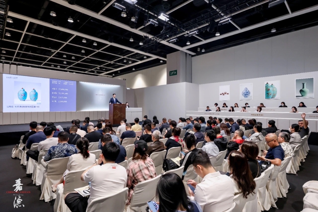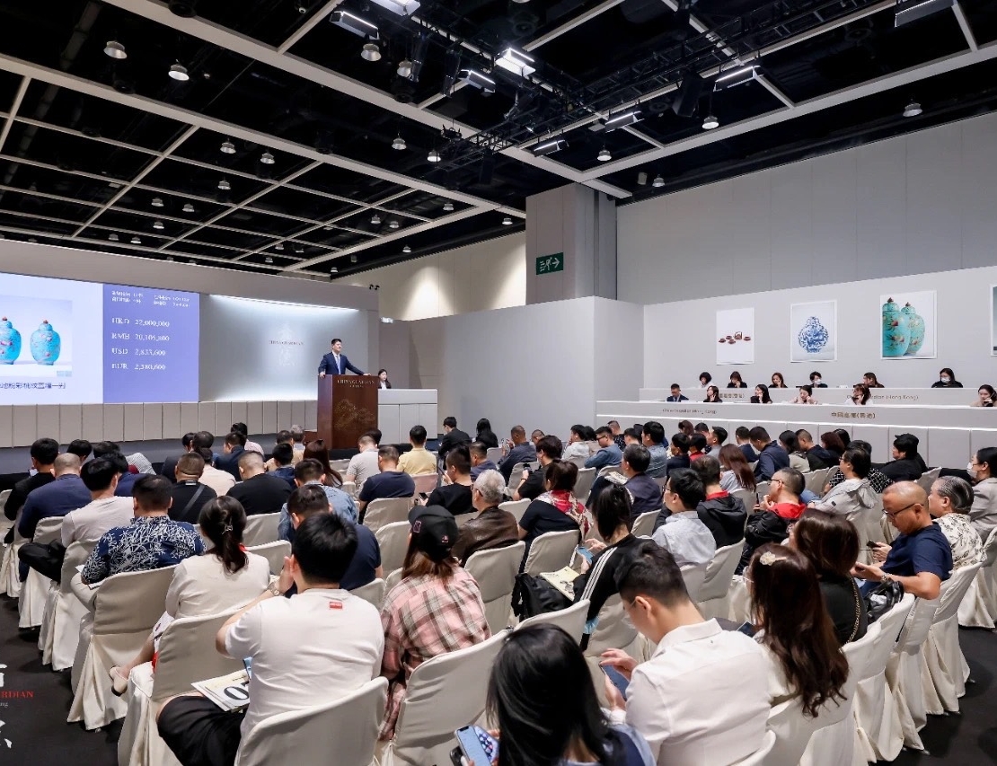 11件拍品悉數成交,8件逾高估價成交,總成交額5641萬8000港元,本場由嘉德首席拍賣官徐軍主持,為本季13個專場中唯一百分百成交之專場,終場瓷器工藝品部總經理及資深專家王晶為其頒發象徵百分百成交的「白手套」證書,獲得滿堂彩。