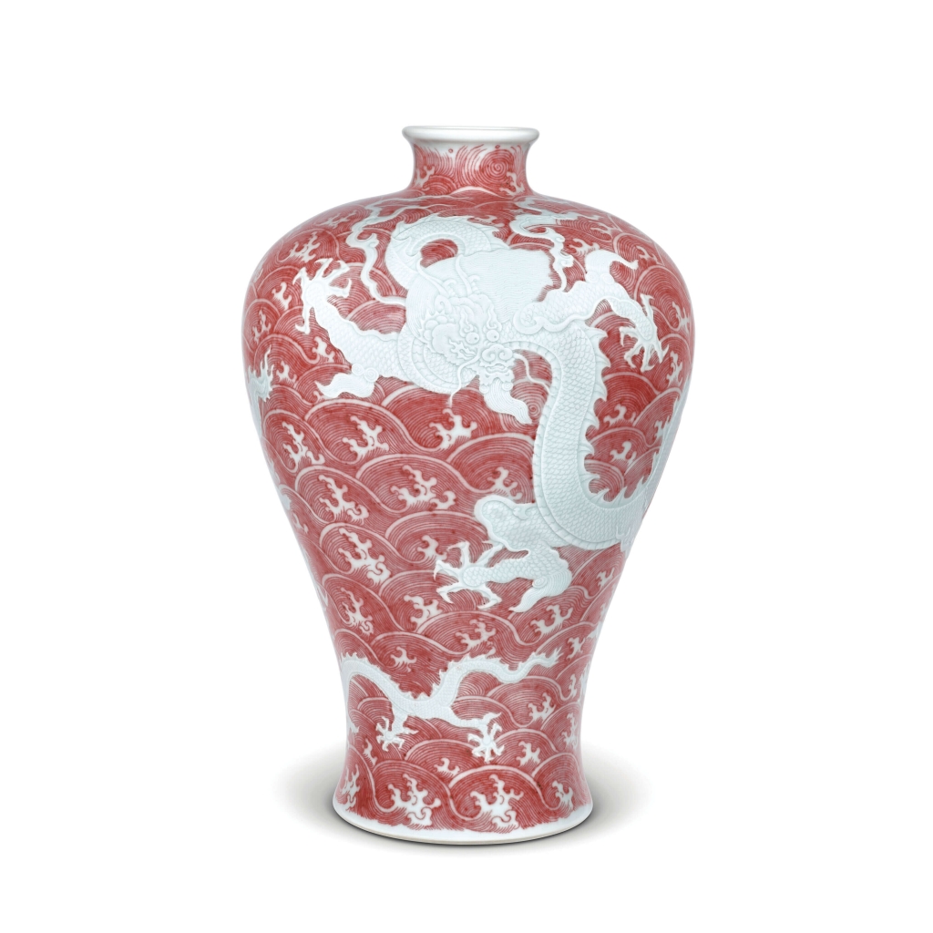 二、佳士得香港2024年5月30日「十全—望星樓珍藏清代官窯瓷器」推出10件百分百成交,成交總額1億2270萬4000港元。千萬拍品有:清雍正《釉裡紅波濤錐拱蒼龍教子圖梅瓶》成交價7812萬5000港元、清乾隆《青花纏枝蓮紋福慶有餘太平有象扁瓶》成交價1005萬5000港元。