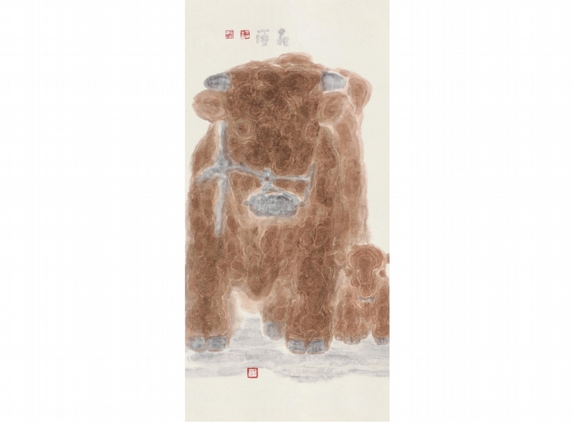 Lot 6377 晁海 《牛》鏡心 設色紙本 138 × 68 cm