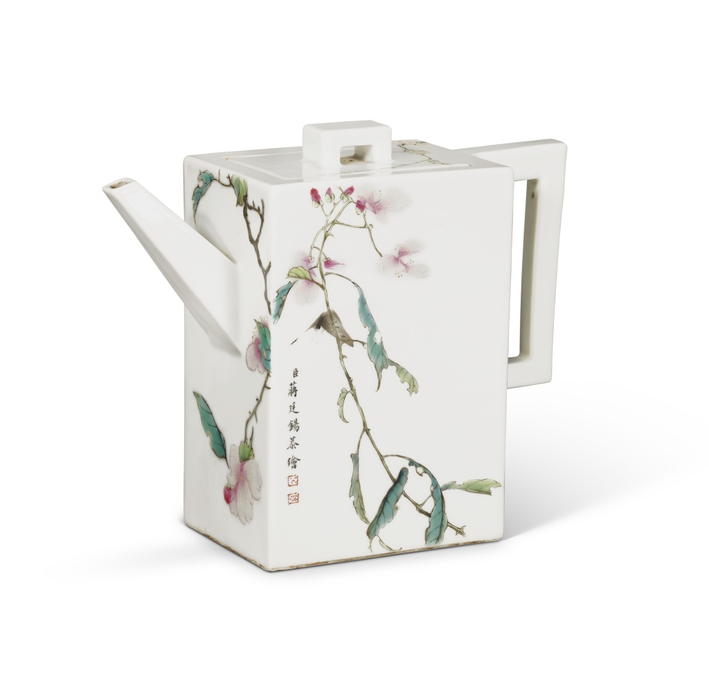 第二名清〈粉彩蝶戀花圖方壺〉,構圖舒朗,設色粉嫩,一隻黑蝶飛舞於櫻花間,款「臣蔣廷錫恭繪」,根據帕默帳本顯示來自山中商會。估價僅20萬至30萬港元,衝出730萬8000港元高價,超低估價36倍,成全場最大黑馬。