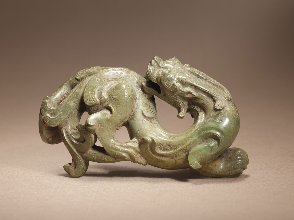 - 西漢晚期至東漢早期〈玉羽人辟邪〉,5.5公分,估價80萬至150萬港元,成交價1187萬港元。