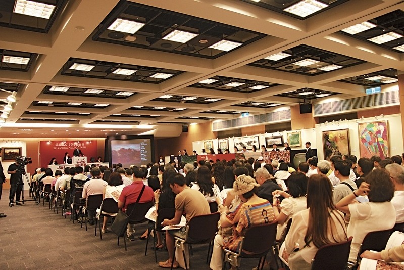 拍前頗受關注的沙耆《紅衣裸女》略帶馬蒂斯的韻味,可惜在拍賣現場的反應則未如預期熱烈,由書面委託買家以低於預估價的230萬元出價即抱得美人歸。而沙耆與吳作人的老師比利時印象派畫家巴斯天有9件靜謐小品上拍亦全數成交,落槌價位在5.5萬元至24萬元區間。至於本場尺幅最大作品為蕭勤的壓克力新作《新希望》由書面委託買家出價260萬元落槌,而另一組作於1970年代的素雅水墨作品《天地相會》與《我心自有佛》則由現場買家以30萬元拿下。