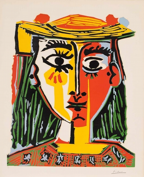 除了油畫原作,還有稀少的麻膠版畫《戴帽拿着絨球和印刷罩衫的女人肖像》(Buste de Femme au Chapeau),鉛筆、彩色粉筆作品《TETE》,以及陶器等20件畢卡索的精彩作品。