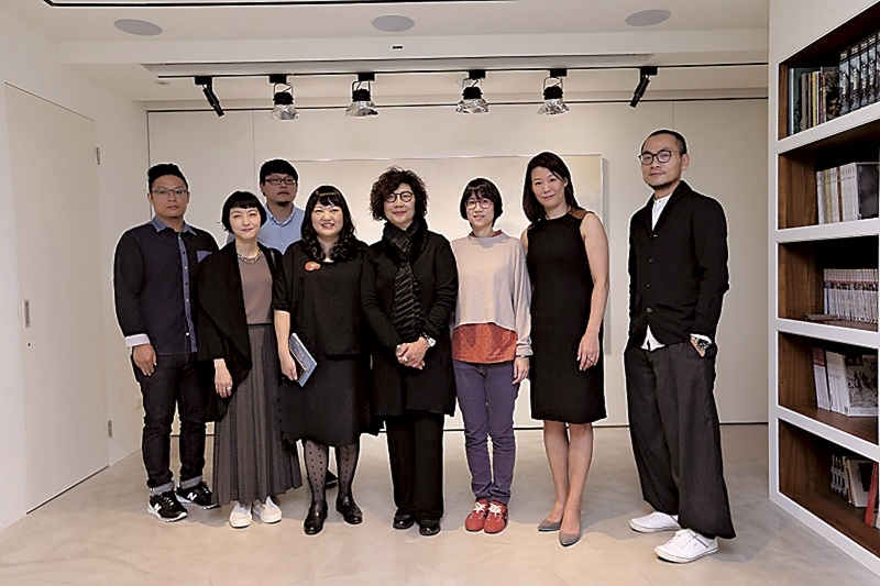 參展藝術家們與心動藝術空間執行長孫玉霞(右2)、策展人胡永芬(左4)合照。(心動藝術空間提供)