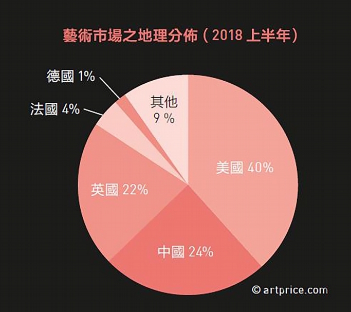 藝術市場之地理分佈(2018上半年)。(artprice提供)