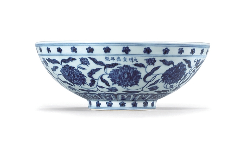 明宣德〈青花纏枝芍藥紋大盌〉,估價80萬~120萬港元。圖︱邦瀚斯香港
