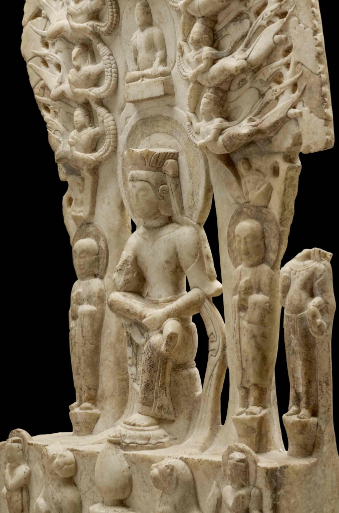 北齊太寧二年(562)〈漢白玉思維太子像〉局部,高115.5公分,估價6萬至8萬英磅。圖/倫敦邦瀚斯。