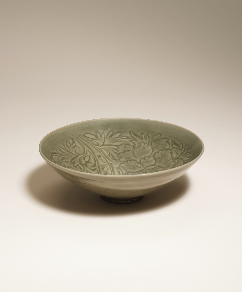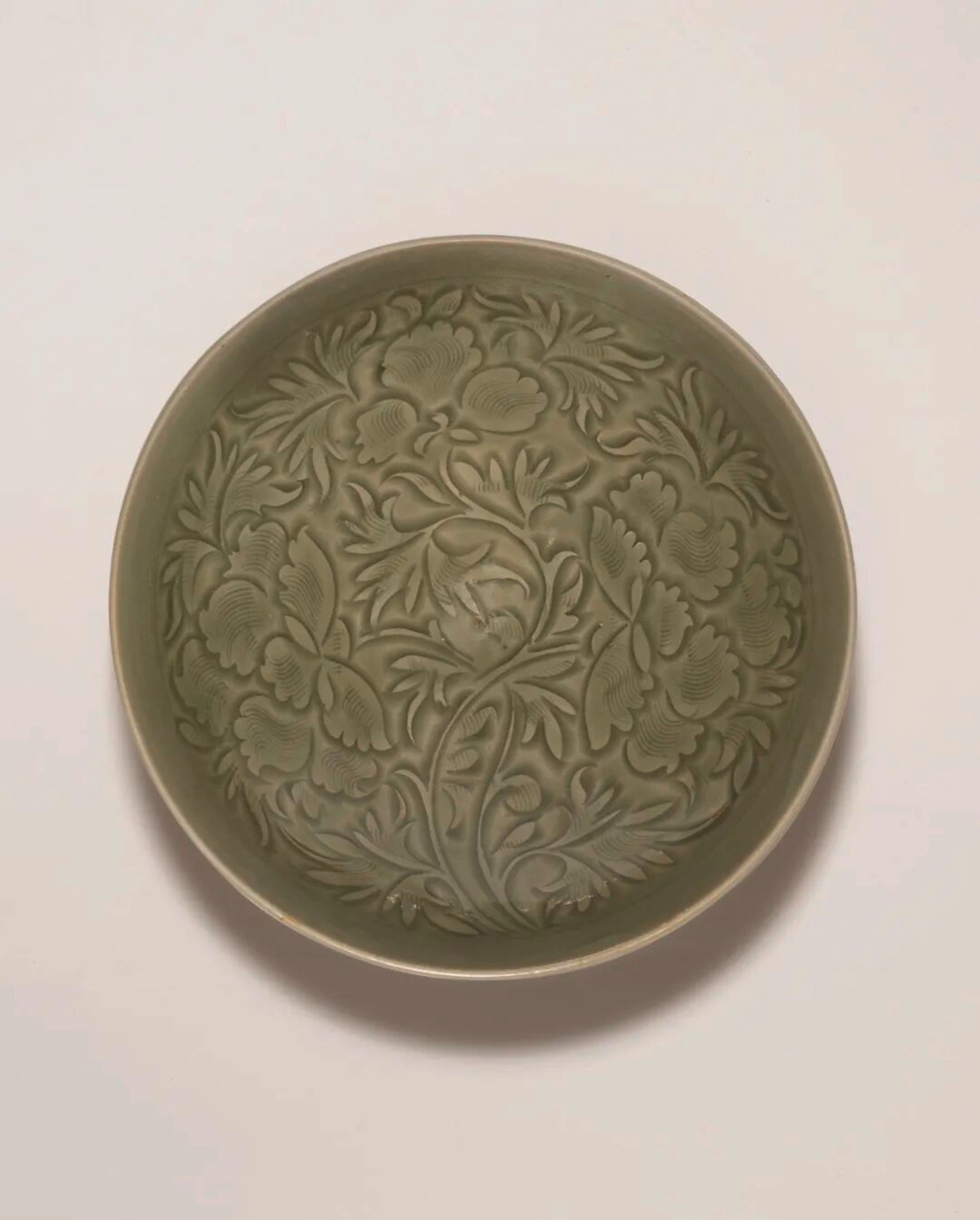 北宋〈耀州窯青釉刻牡丹紋碗〉,徑22.8公分,估價4萬至6萬英鎊。圖/倫敦邦瀚斯。