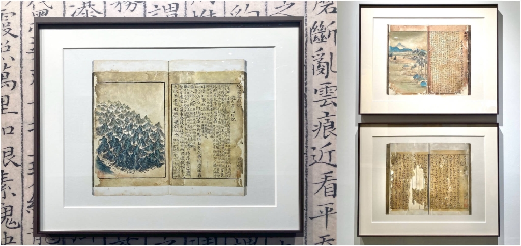 中國畫工筆技法紮實的劉欣,此次在異雲書屋展位上有數件仿殘破古書所作的彩墨寫實之作,右頁為古籍文本如《西遊記》、《徐霞客遊記》、郭熙《林泉高致》,而藝術家選擇這些耳熟能詳的文本中並不常為人所談及的部分,例如《西遊記》第十回中漁夫與樵夫針對山青水秀孰優孰劣的辯論,針對其中的描繪而作彩墨山水;而《徐霞客遊記》一作,也在文本中擇取圖像直接相關的語句,並以更大的字型區分於其他文字;或是,以《道德經》純文本入畫,而取其虛實相生之意境,畫出書頁殘破的模樣。劉欣以創造的姿態再訪傳統文化及經典文學和論叢,尋找志趣相投之處,以當代之視角回應古籍的思想與意趣。(文/嚴瀟瀟)