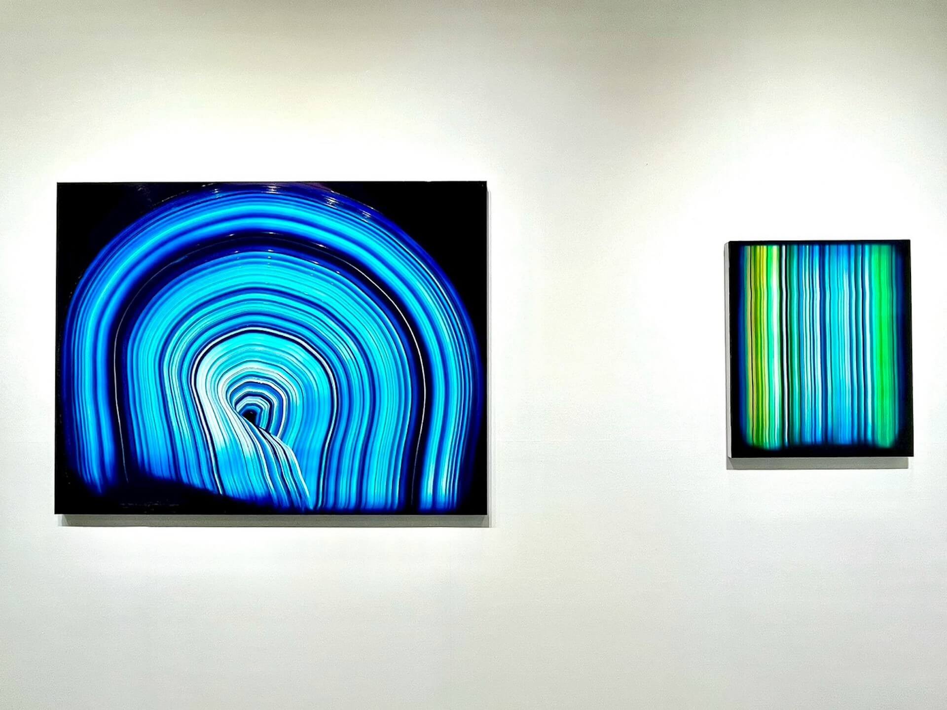 光,之於宗教有其重要的象徵意涵。東京畫廊√K Contemporary於展位呈現的《Halo III》,以藍色油彩推展為半圓形的造型啟發於佛像藝術的背光元素,亦可聯想至西方宗教繪畫的聖人或天使於頭頂的光圈,反映出他對東西方宗教觀念與藝術表現之間交流的探索。對藝術家而言,最常使用藍色係因其是最不易受到干預的顏色,相對的恆定性也呼應宗教帶給人心的平靜與安定之感。