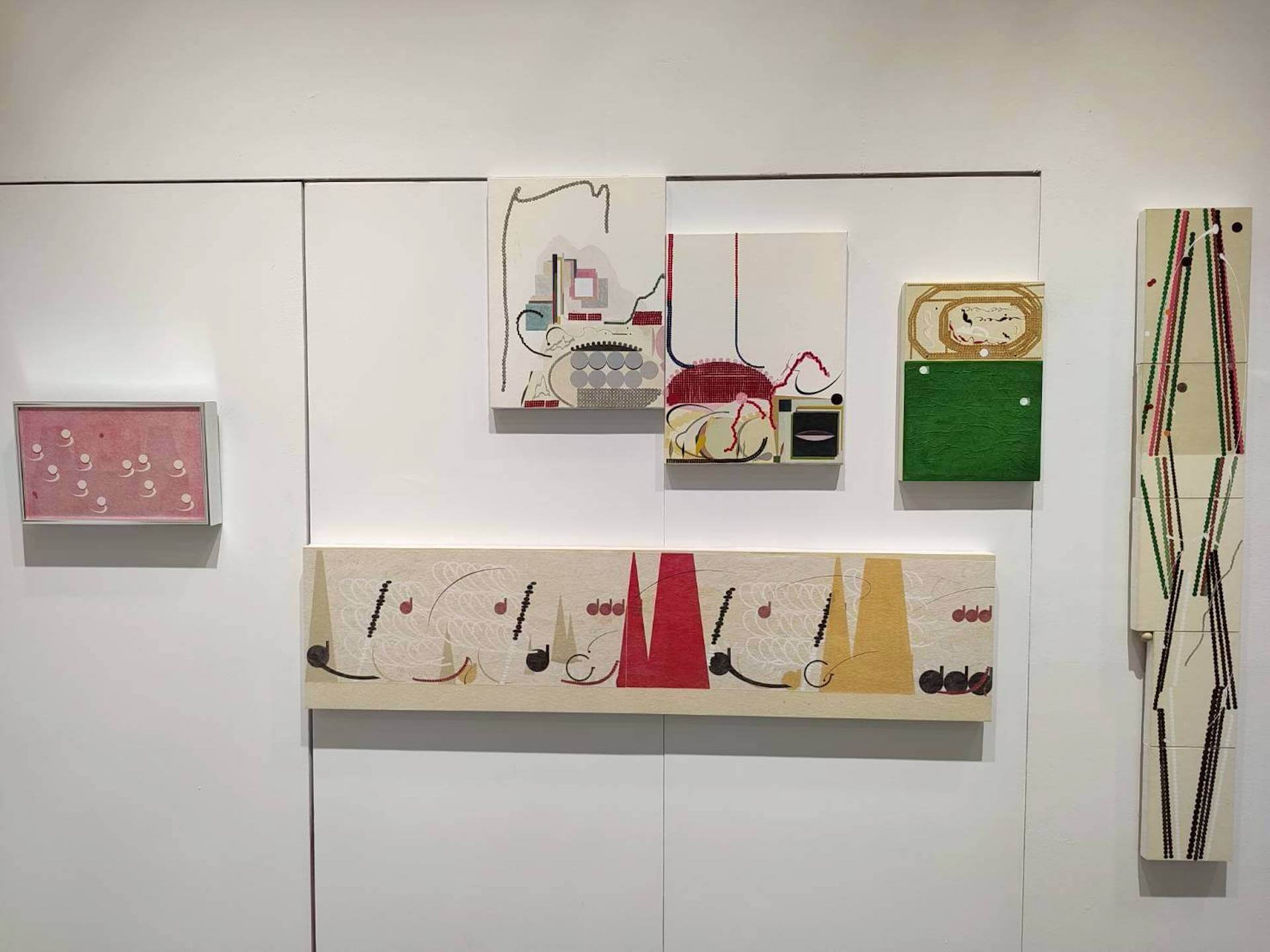 大河美術長期合作的韓國藝術家Lili Lee,受薩滿療癒影響,以看似無機的線條幾何,結合形成出人意表的有機線段與環迴排列,定睛細看,更能察覺大小的轉變乃至於圓扁的差異,一如未知的神祕語言或音樂記譜,本次展出的作品除了《言之有骨1&2》為2024年的作品之外,其均為今年的新作,旨在試探語言與溝通的關係,語言絕非溝通的全貌,心意相通的互動,還可能來自於肢體的照會、步調的同頻劃一,乃至於神情眼色,「Where Words Fade」個展系列可以視作藝術家與觀眾的無聲對話,透過紅綠黃黑的色塊、圓點、弧線與轉折,和偶遇的「越界」,清脆如珠玉落盤、擲地有聲。(文/陳賦)