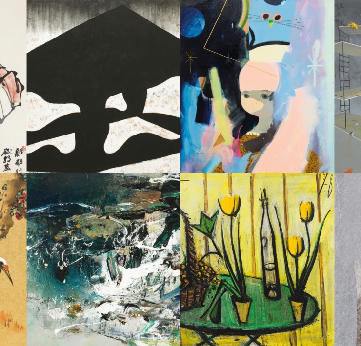 屆時呈現多位亞洲藝術大師精粹;現代藝術板塊以華人抽象藝術之最趙無極完美演繹東方文化與西方藝術交融的《30.09.97》為領銜拍品,該作富麗充滿光采的澄黃與湛青極為引人入勝,格局恢弘,細節精巧華美,亦有1948年的早期油畫創作《無題》為趙氏旅法時期創作濫觴;同儕朱德群亦然,不同時期的傑作《抽象No.82》、《和諧之音》、《夜》、《變幻》,宛如一首磅礡交響樂的序曲、慢板、快板、急板一氣呵成,為朱氏藝術最流暢且動人的詮釋。是拍由法國、亞洲藏家割愛多件來源有緒的常玉精品亦為本拍備受矚目的品項;旅美藝術家丁雄泉斑斕色彩的創作《外頭正下著雨》與陳蔭羆解構中文字體的抽象作品《文字變奏系列》、《青綠山水》皆為華人表現主義亮點代表;今次春拍更帶來2件「聯華電子」收藏多年,現代水墨大家江兆申5米長的巨作《彭蠡秋光》與《長林大澤》,皆為其創作生涯重要作品。