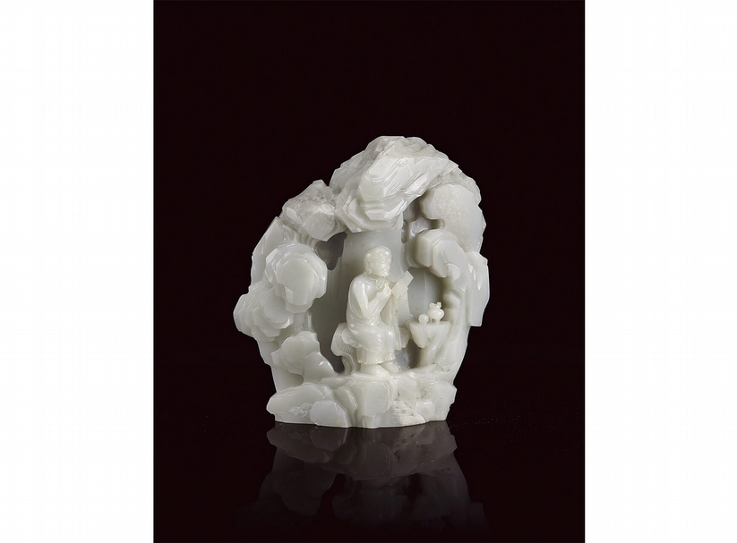 清乾隆戊寅年(1758)〈白玉御製贊阿必達尊者山子〉,高21公分,估價800萬~1500萬港元。
