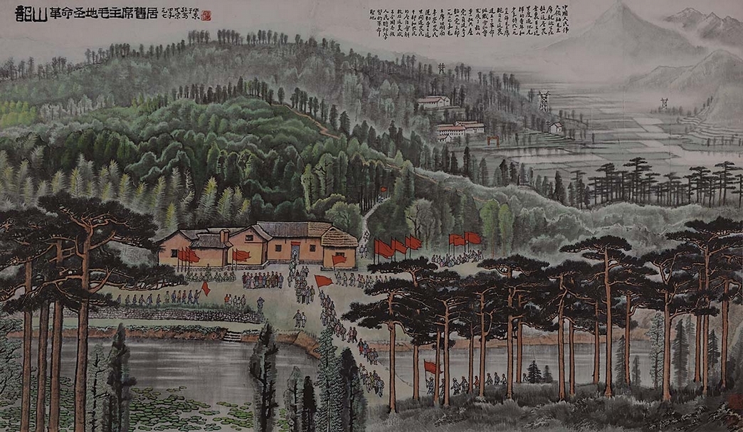 文革期間,繪畫創作題材被限制得極為狹窄,山水畫只能畫桂林、灕江等自然風光和革命聖地,而毛澤東出生地韶山自然成為畫家取材的首選。目前所知,文化大革命期間的1969年,李可染從牛棚被召至北京飯店作布置畫,即有一稿未及署名的〈韶山 革命聖地毛主席舊居〉;1971年李可染下放丹江,又畫有一〈韶山 革命聖地毛主席舊居〉;1974年,李可染在前兩稿的基礎上,斟酌構圖,細心經營,畫成〈韶山 革命聖地毛主席舊居〉,此作為其同類題材中尺幅最大的一件。畫面以毛澤東故居為視覺中心,來自各地的朝聖人群高舉紅旗,使畫面豐滿而鮮活,故居背後綠樹成蔭,層層推向天際;前景水塘愈加開闊,松柏筆直而立;右側寬闊水田將視線引向遠方。整幅構圖嚴謹,中景與近景、遠景樹木茂密,相互呼應,層次豐富分明且靈動,點景人物格外精彩,氣氛熱烈,反映了時代的風貌,同時記錄下韶山革命聖地在紅色歲月裡的空前盛況。1996年,李可染家屬為籌備「李可染基金會」委託中國嘉德秋拍,拍得人民幣152萬元;2012年再度現身中國嘉德春拍,成交價人民幣1.242億元;2017年北京保利以人民幣1.38億元起拍,以人民幣1.7825億元成交。