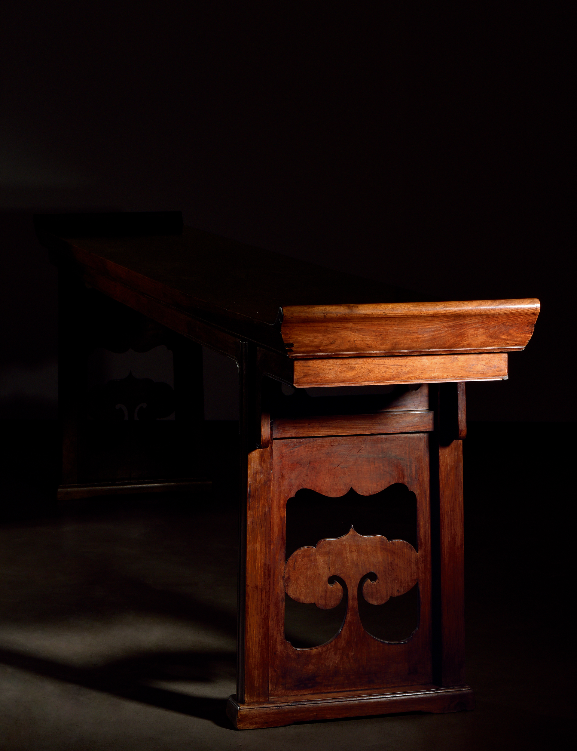 晚明時期,中國文人良好的儒學修養使他們始終抱著積極入世的姿態。本次華藝國際北京秋拍重要拍品——現存世最大的黃花梨獨板如意雲紋翹頭案,即為明清文人質樸其外而美蘊於內的審美理想的絕佳體現。