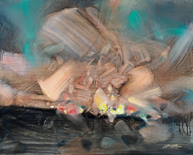 朱德群《想像的翱翔》,油彩畫布,65×81cm,2002年作,預估價:160萬至260萬港元。(中國嘉德香港提供)