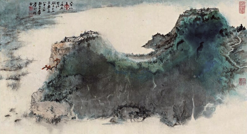 分居四、五名的則是張大千〈江村滴翠〉與吳冠中〈千帆夕照〉,各以575萬和414萬元易主。此外,破百萬以上拍品,尚包括吳昌碩、齊白石、黃賓虹、李可染、陸儼少等諸家名作,猶如一部洋洋灑灑中國近現代畫史。至於成扇部分,則由陸儼少作於1965年的〈雙面繪扇〉以195.5萬元成交奪冠;而潘天壽、吳湖帆等16家為滬上富商章顯庭所作之〈書畫格景扇〉,則以138萬元成交居次,為賞愛者納入囊中。