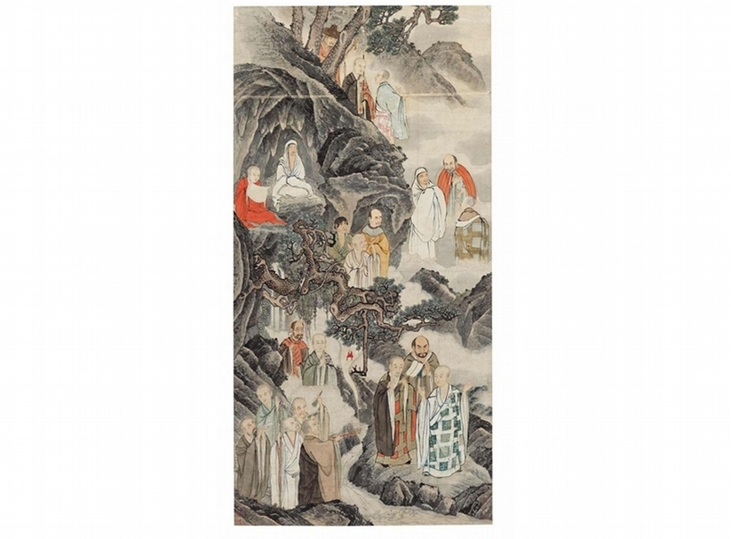 佳士得:編號13明丁雲鵬/盛茂燁〈羅漢圖〉,成交價106萬8500美元。圖為兩件其一。圖片提供:佳士得