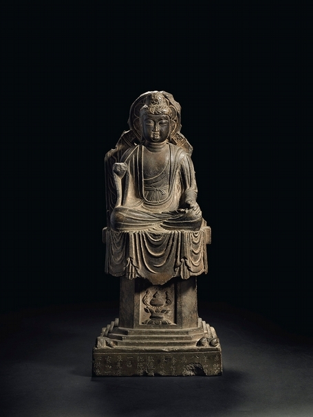 佳士得:編號833唐垂拱元年(658)〈石灰岩雕佛坐像〉,成交價67萬2500美元。圖片提供:佳士得