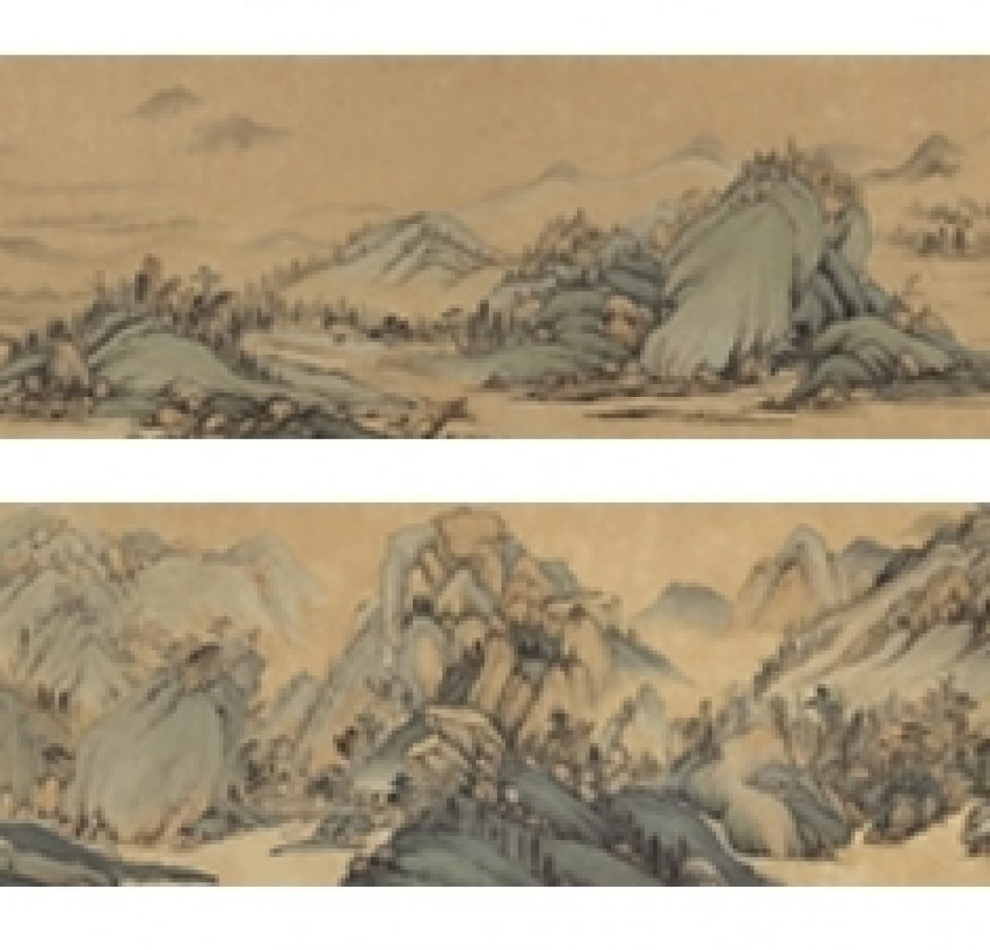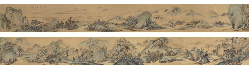 盛元芳1963年作〈溪山晴翠〉,設色絹本,26.5×455公分。圖為畫心。(圖︱新光國際)
