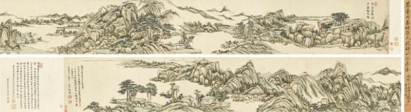 2017佳士得香港秋拍拍品-清代王原祁〈仿黃子久淺絳山水〉長卷,以4847萬5000港元成交。圖片提供:佳士得香港