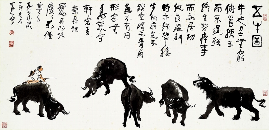 李可染〈五牛圖〉鏡心設色紙本,67×138公分,預估價500萬~600萬港元。圖片提供:中國嘉德(香港)