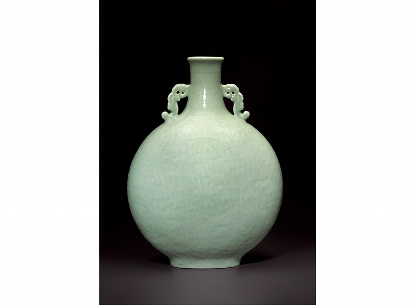 佳士得「中國瓷器及工藝精品」編號2162清乾隆〈粉青釉刻纏枝蓮紋大抱月瓶〉,成交價204萬5000美元。
