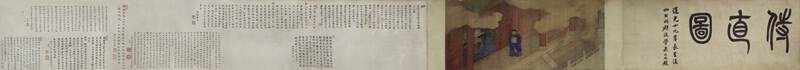 禹之鼎康熙二十五年作〈侍直圖〉,設色絹本手卷,畫心43×97.8公分,全卷43×270公分。
