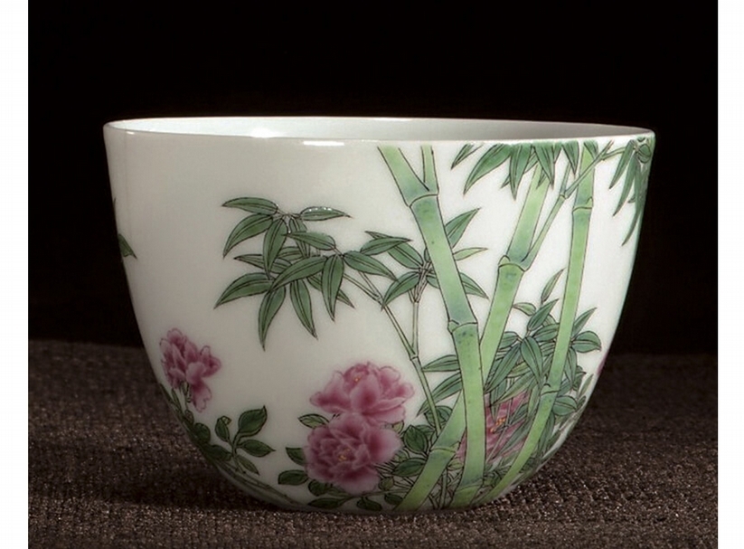 清雍正〈琺瑯彩月季綠竹詩意小杯〉,成交價人民幣2242.5萬元。