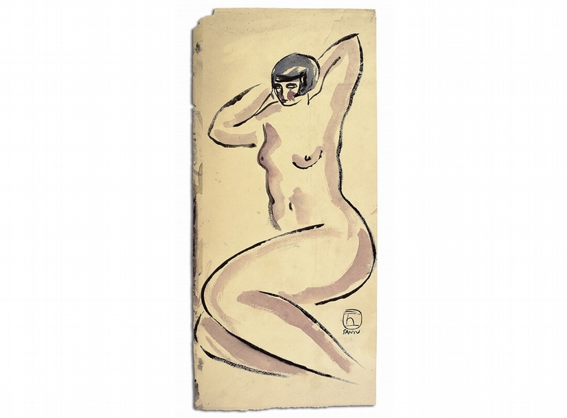 常玉《坐姿裸女》.水墨、水彩紙本.1920/30。預估價:30萬至40萬港元。