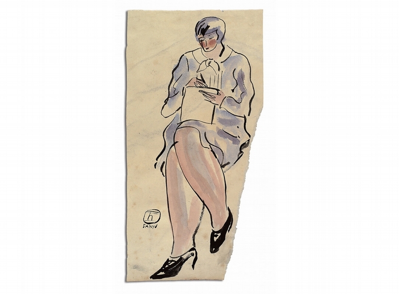 常玉《紫洋裝女士》.水墨、水彩紙本.1920/30。預估價:250,000-350,000港元。