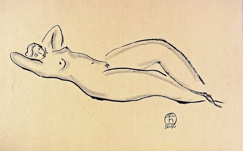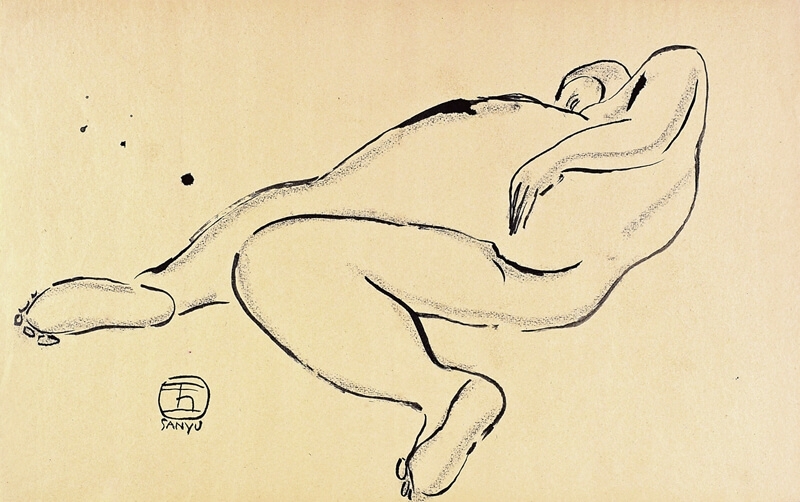 常玉《躺臥裸女》.水墨、炭筆紙本.1920/30。估價:12萬至18萬港元。