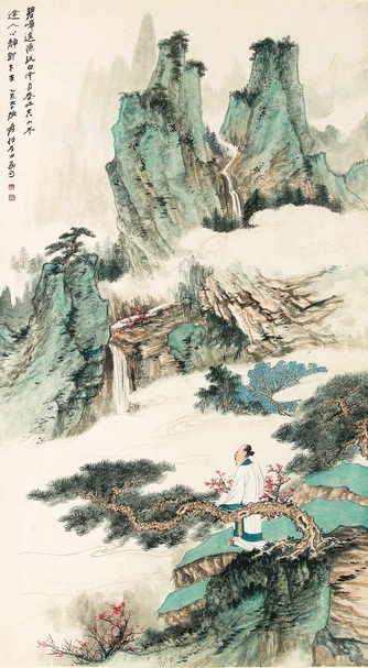 張大千,碧嶂遙隱,設色紙本立軸,1945年作,128×69.5cm,預估價:1,500,000台幣。圖片提供:台北瀚宇拍賣