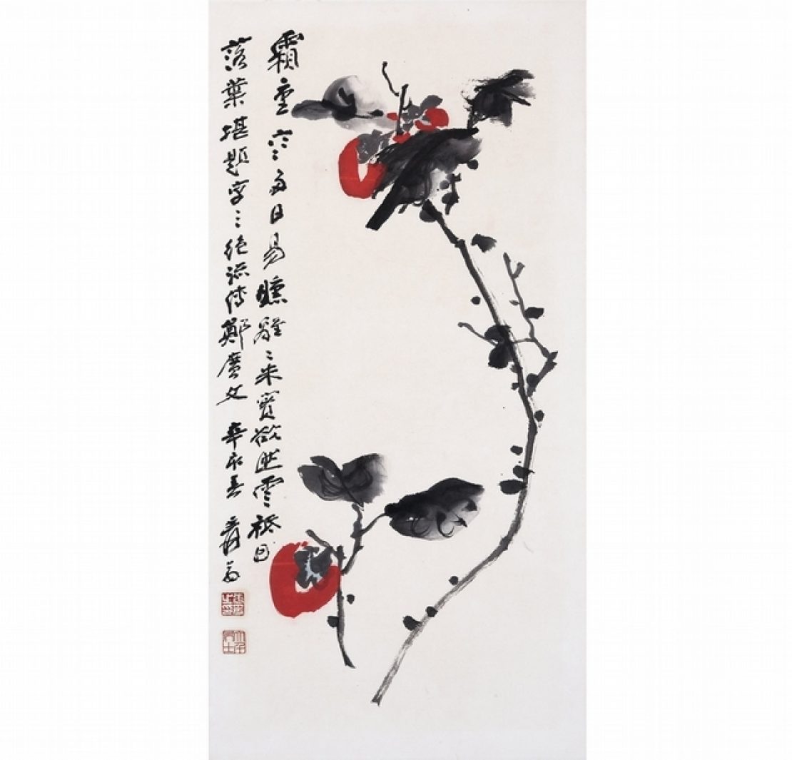 張大千 (1899- 1983) 利市大發 33×66 cm 設色紙本 鏡框 ZHANG DAQIAN (1899- 1983) PERSIMMON