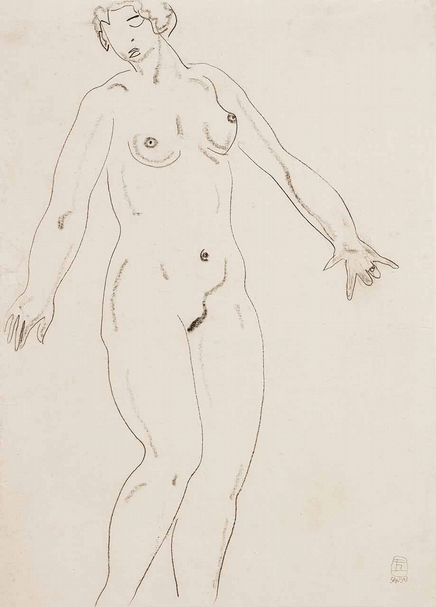 常玉,《站姿裸女》,鉛筆紙本,46.5×33 cm,估價:HKD 120,000-220,000(中國嘉德(香港)提供)