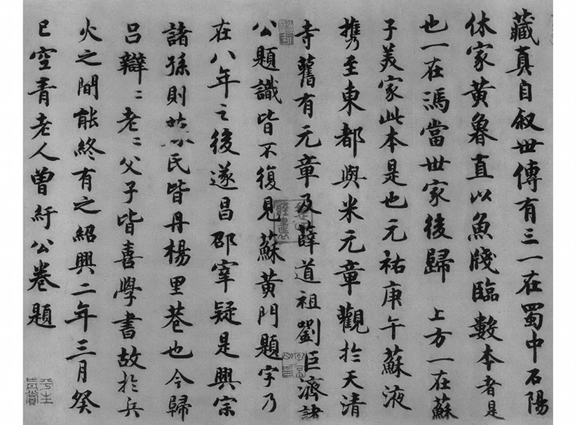 至於被曾紆稱為“知縣七哥”的允直,目前尚不能確知其為誰,希望日後能有所發現。但名人寫信的物件未必也一定是著名人物,宋代當知縣的人甚多,史書記載的只是極為少數的一部分,即使同字“允直”的也未必就是曾紆所稱的“七哥”。好在當今有學識的智者頗多。如能撥雲見日,自能大快人心。即使終不明其人,亦無關緊要。因為作為一件北宋書法,曾紆《過訪帖》經南宋“珍繪堂”收藏,又迭經清乾嘉時名士錢泳及近代天才鑒定家張珩及名藏家譚敬、張文魁遞藏,經歷了九百年種種歷史劫難與歲月浸蝕仍保存相當完好,顯然是十分稀有而珍貴的。
