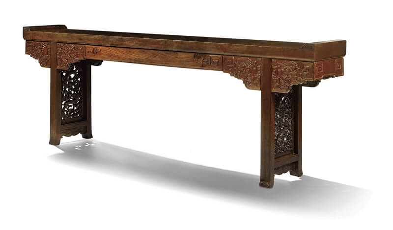 黃花梨中國古典家具買氣暢旺,不僅17、18世紀巔峰時期熱賣,連19、20世紀也都大受歡迎,只要估價低且有來歷者幾乎全售出,其中為數不少者更以預估價數倍成交,並皆擠進各家拍賣十大高價排行榜,同屬珍貴硬木且為數更少的紫檀家具同樣表現出色。此季焦點蘇富比「歐洲私人收藏:中國古典家具」,前十大高價幾乎清一色為亞洲買家並以中國占絕大多數,僅一位歐洲私人藏家進榜;前三高價者皆破百萬英鎊,分別為編號8的17或18世紀〈黃花梨獨板面翹頭案〉,以預估低標十餘倍的180萬5000英鎊售予亞洲私人藏家;其次編號19的18世紀清〈紫檀鑲大理石羅漢床〉,以預估低標近十倍的146萬9000英鎊由亞洲私人藏家得標;其三為編號4的17或18世紀〈黃花梨角立櫃(一對)〉,成交價同樣為近預估低標十倍的144萬5000英鎊,得主為亞洲私人藏家。