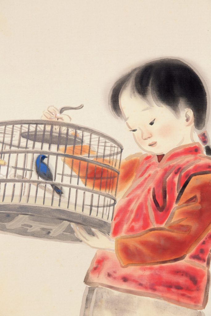 東山魁夷(1908-1999)以風景畫著稱,他善以西方寫實的眼光捕捉日本情調之美,為日本美術展覽「三山」(另二人為杉山寧、高山辰雄)之一,影響戰後的日本畫壇至深。本幅《春光》可謂其藝術生涯中一幅少見的人物畫。1943年4月到5月間,東山魁夷途徑奉天、承德到北京旅行,分別在承德逗留了17天,北京15天,期間進行了大量寫生。本作應為該段時間藝術家在街上看見的中國少女。回到日本後不久,東山魁夷在第九屆清溪展中展出了和本作尺寸相同且畫境一致的作品。在該件也名為《春光》的作品中,藝術家在少女與觀者中間畫了一個鳥籠。與展覽會作品相比,本作更直接地展現了少女即立於眼前的清新感覺。