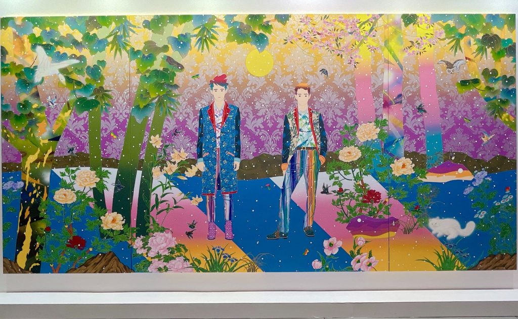 主會場正中心由東京六本木「KOTARO NUKAGA」藝廊帶來松山智一(Tomokazu Matsuyama)代表系列「Fictional Landscape」中的《People With People》,為日本境內展示以來最大型作品。松山智一於紐約學習商業設計,融合日本狩野派、浮世繪以及西方抽象表現、普普藝術,透過自身經驗展現全新意象。他曾在2021年5月於新宿車站設置公共藝術,並曾為日本藝術雜誌《美術手帖》6月特輯的封面人物,近期受到極大關注,KOTARO NUKAGA已連續2年展出松山智一與平子雄一的作品。