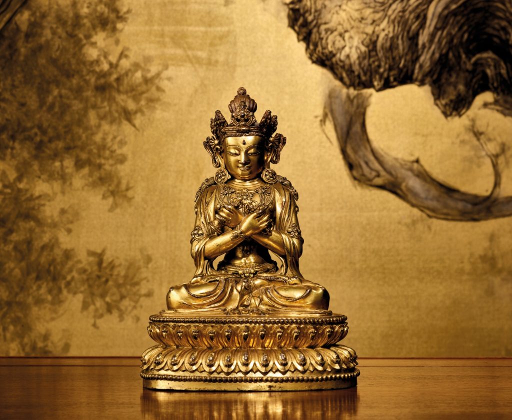 佛教造像則有兼具藝術及歷史價值的為明永樂《鎏金銅金剛總持坐像》。這件精美的明初金銅佛像出自重要的瑞士藏家,於1970年代在蘇黎世一家著名的東方藝術品古董商處購得。從那時起,這件金銅佛就一直在同一位藏家手中,此次為該件第一次在公開市場上拍。