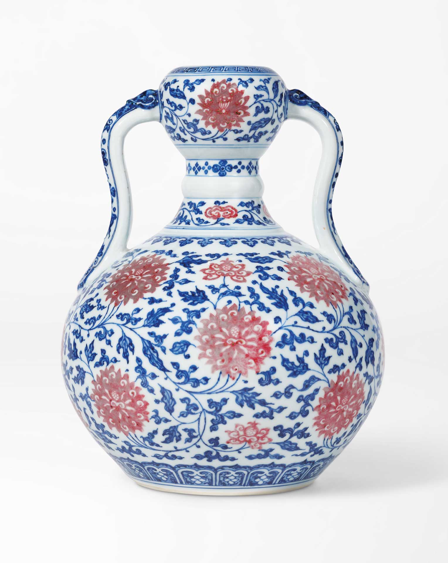 本季萃選的首批望星樓藏瓷,曾於2003年在美國明尼阿波利斯美術館的「清代康雍乾官窯瓷器:望星樓藏瓷」(Imperial Perfection─The Palace Porcelain of Three Emperors)展覽亮相,此後十九年一直外借予該館。這些珍品展現了御窯廠突破重重困難所達到的鬼斧神工之境,例如雍正《御製胭脂紅地琺瑯彩纏枝蕃蓮紋酒圓》,以及《青花釉裡紅纏枝蓮紋綬帶耳葫蘆尊》等,便體現了盛清御窯廠對色彩及器形爐火純青的把握。