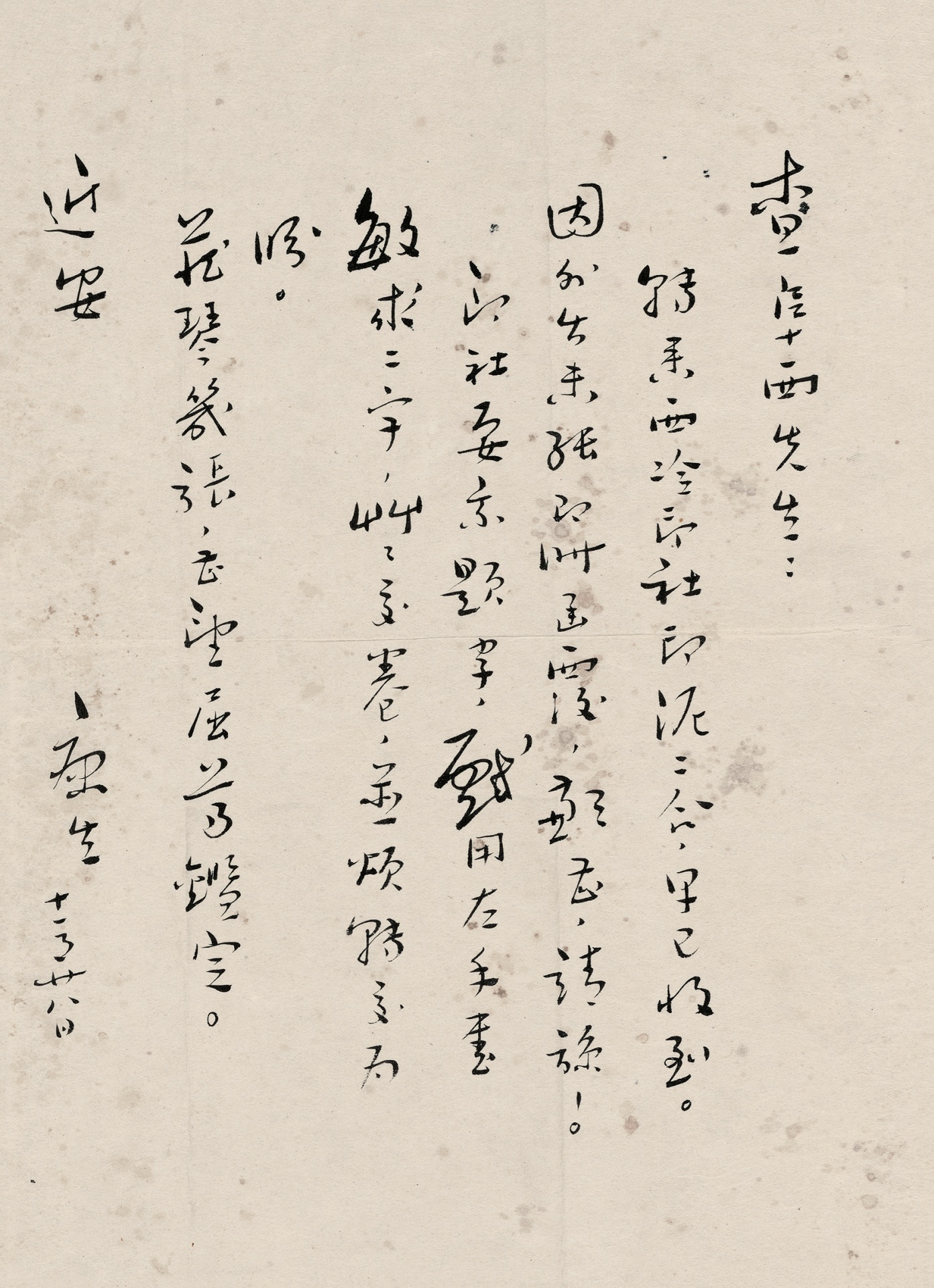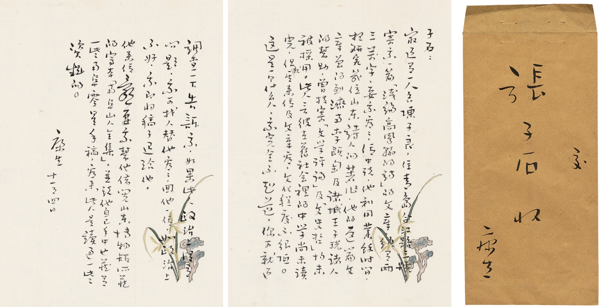 康生對高鳳翰的作品十分關注,幾乎是逢高必收,且對高鳳翰做過相當的研究。在這批信札中,也有一篇談到高鳳翰。在這封寫給兒子張子石的信中,康生提到有人寄給他一篇《淺編高鳳翰的詩》的文章,投寄雜誌均未被採用,對於這樣一個近乎佚名的來信,康生並沒有隨手丟置一旁,而是認真讀過文章後致信兒子詢問:「這是一個什麼人,我完全不知道,你可就近調查一下告訴我。 如果此人政治上沒有問題,我可找人替他看看,回他一信……」康生素來自視甚高,但從這份信裡,我們還是能看到他願意提攜同道的一面。
