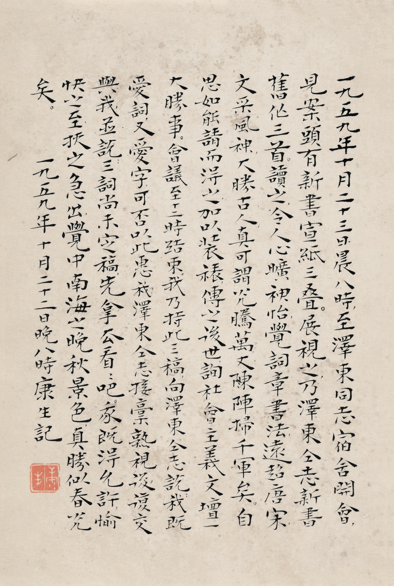 無論是在文學、戲曲、版本,還是金石、書畫等領域,康生都是一位大家。此季春拍,華藝國際得以集中呈獻一批1950至1960年代的康生手抄本、信札、書作、硯拓,內容反映康生探討整理戲曲版本、藝術鑒賞等領域的概況,及他在文壇藝界交遊的一些故實,以此窺其於文學藝術成就。
