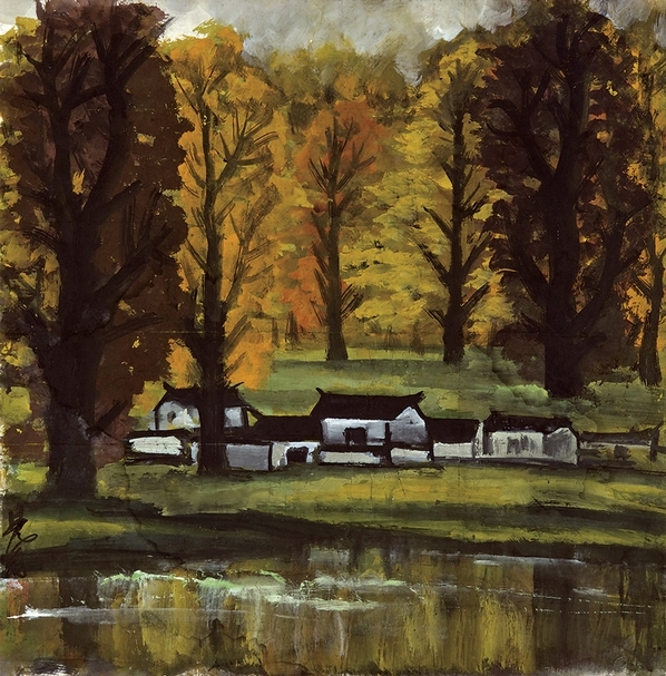 林風眠《秋林小屋》.水彩紙本.65.5×64 cm。圖|正德拍賣