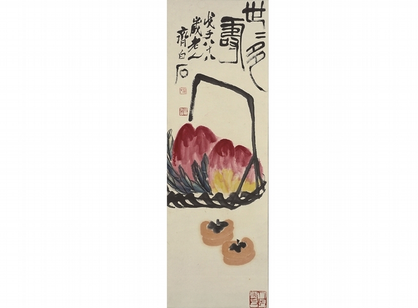 齊白石《世世多壽》.設色紙本、立軸.104×34cm。圖|正德拍賣