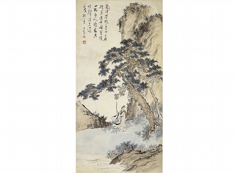 溥儒《松蔭高士》.設色紙本、立軸.95×48 cm。圖|正德拍賣