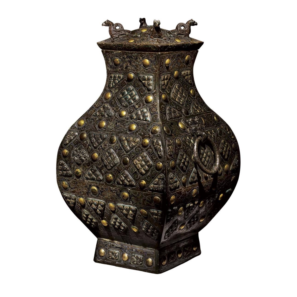 2戰國公元前4╱3世紀〈青銅錯金銀嵌琉璃乳釘紋方壺〉