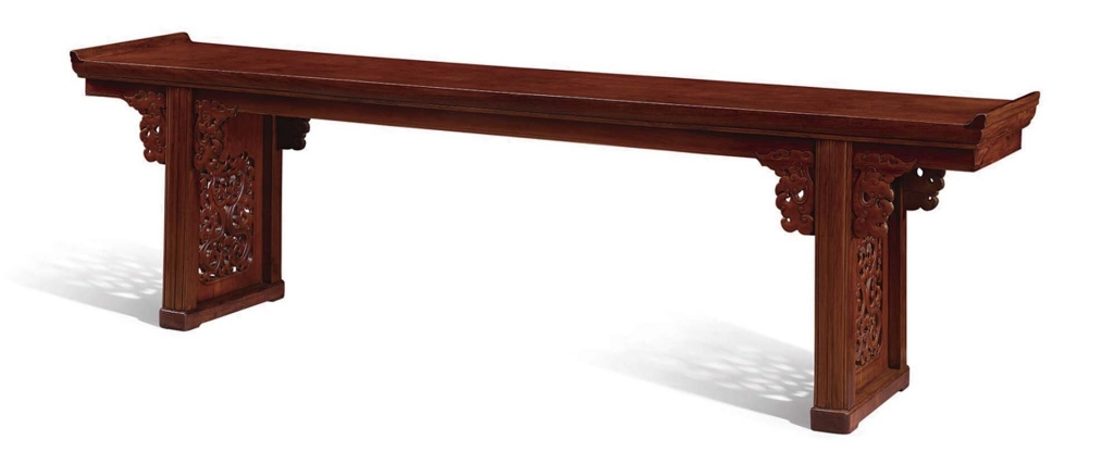該明末清初〈黃花梨獨板如意雲紋大翹頭案〉長352公分、寬52公分、高92.1公分,按拍賣公司所示,係為目前存世所知最大型、未經裁切的獨板案面的條案。這類型的大翹頭案過去經常用於家屋空間中的祭祀場所外,之後也成為日常用器的一部分,成為該家族及其主人的身分地位象徵。該拍品曾為洪建生舊藏,洪氏與知名收藏家安思遠為舊識,安思遠曾提及洪氏的家具收藏:「無論從數量和品質上,都在當今的私人收藏界堪稱一枝獨秀的中國早期家具的收藏。」