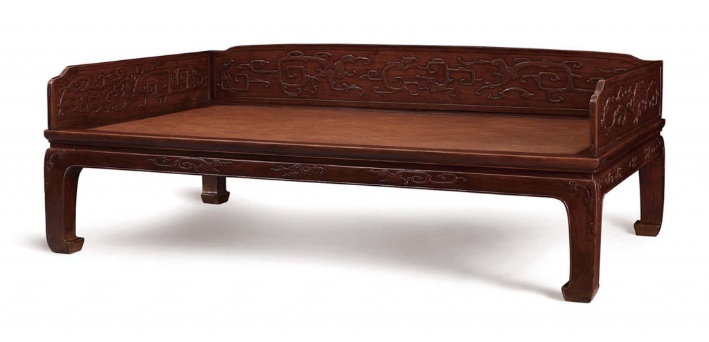 7明17世紀〈黃花梨獨板圍子夔龍紋羅漢床〉
